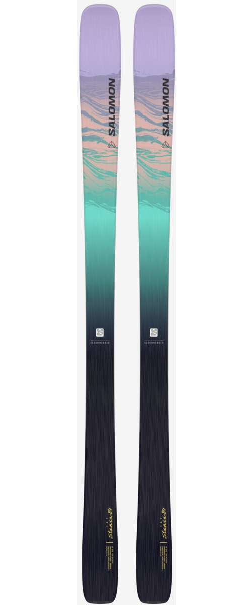 Energetic yet stable, the Salomon Stance 84 is the women’s setup that will take you anywhere on the mountain. The Titanal frame gives you the perfect boost for cruising through crud or icy groomers, while the progressive frontside sidecut and poplar wood core ensure lively, controllable turns, no matter how steep or deep. Let’s Stance!